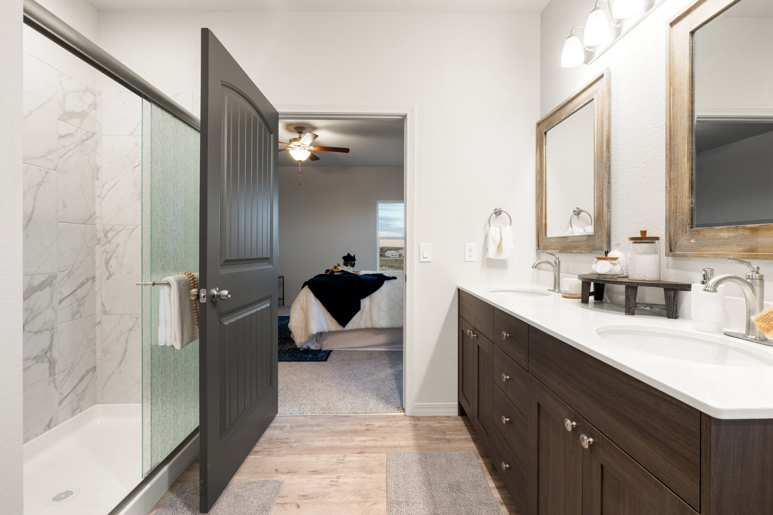 With three spacious bedrooms and two elegant baths, The Whisper offers room for everyone. The luxurious primary suite includes a 5-piece spa style bath with dual vanities, soaking tub, and walk in shower. A three-car garage provides abundant space for vehicles, storage, or a workshop, while acreage lots allow room for gardens, pets, or RV parking.