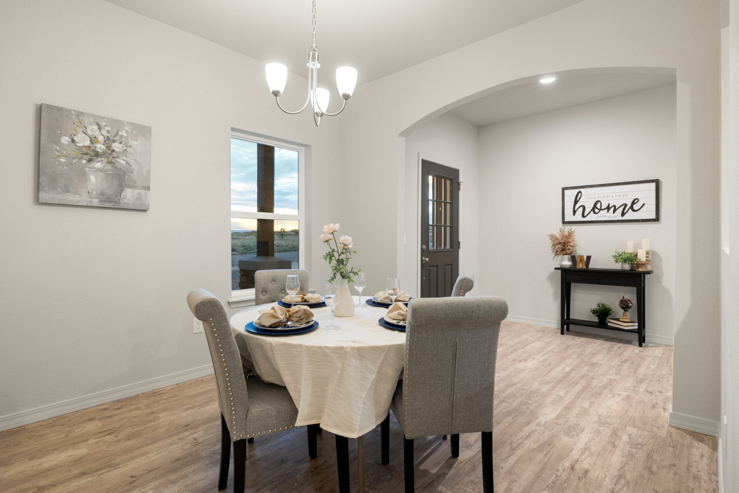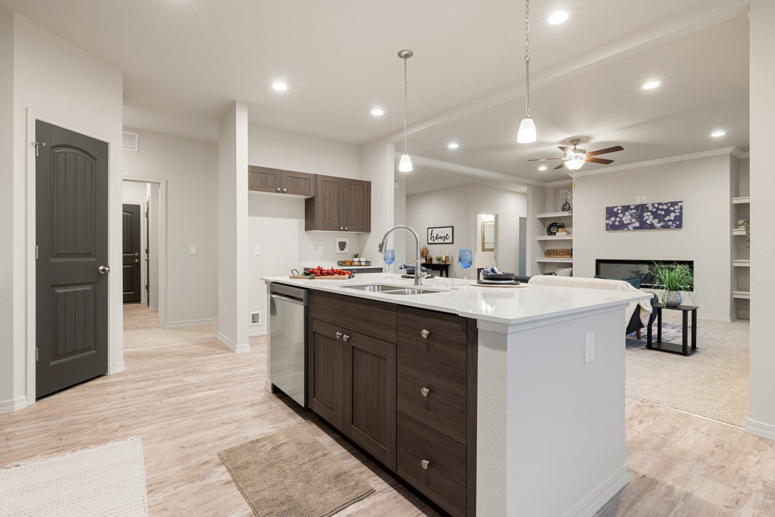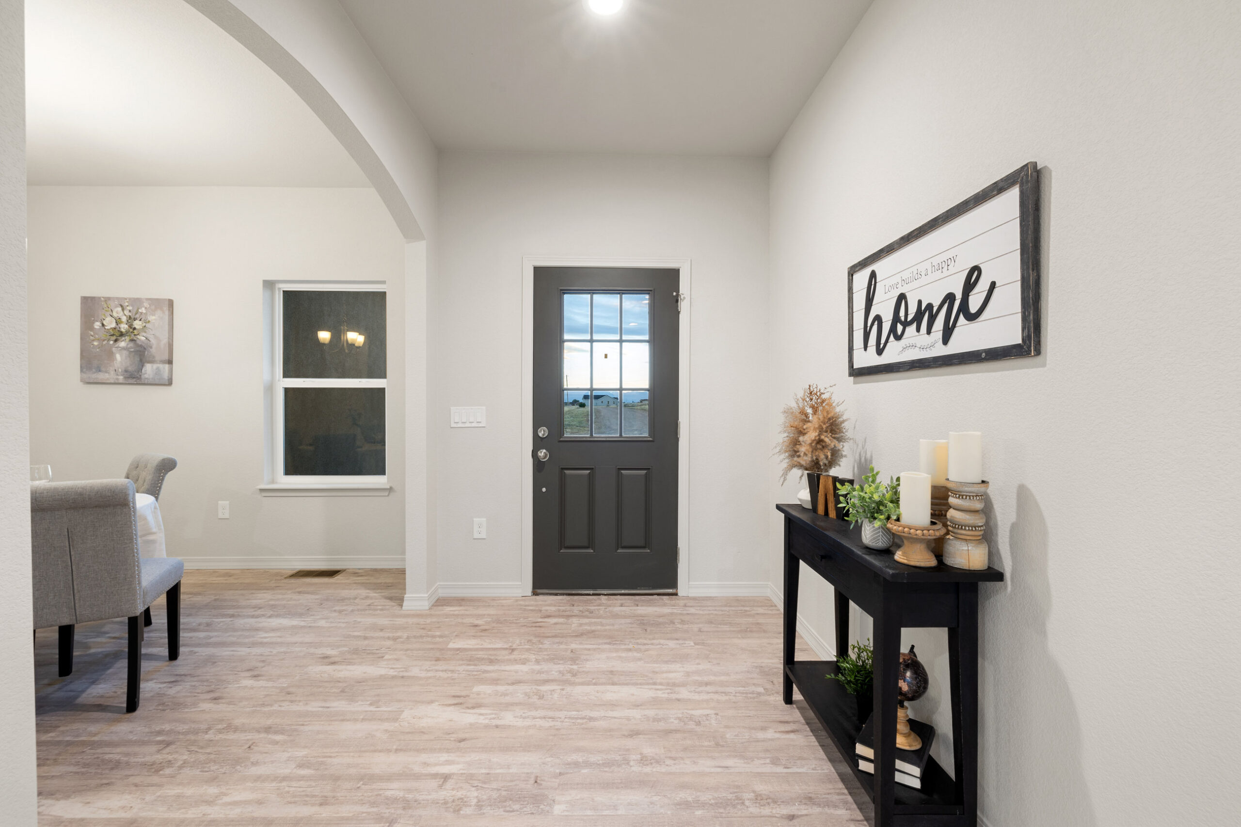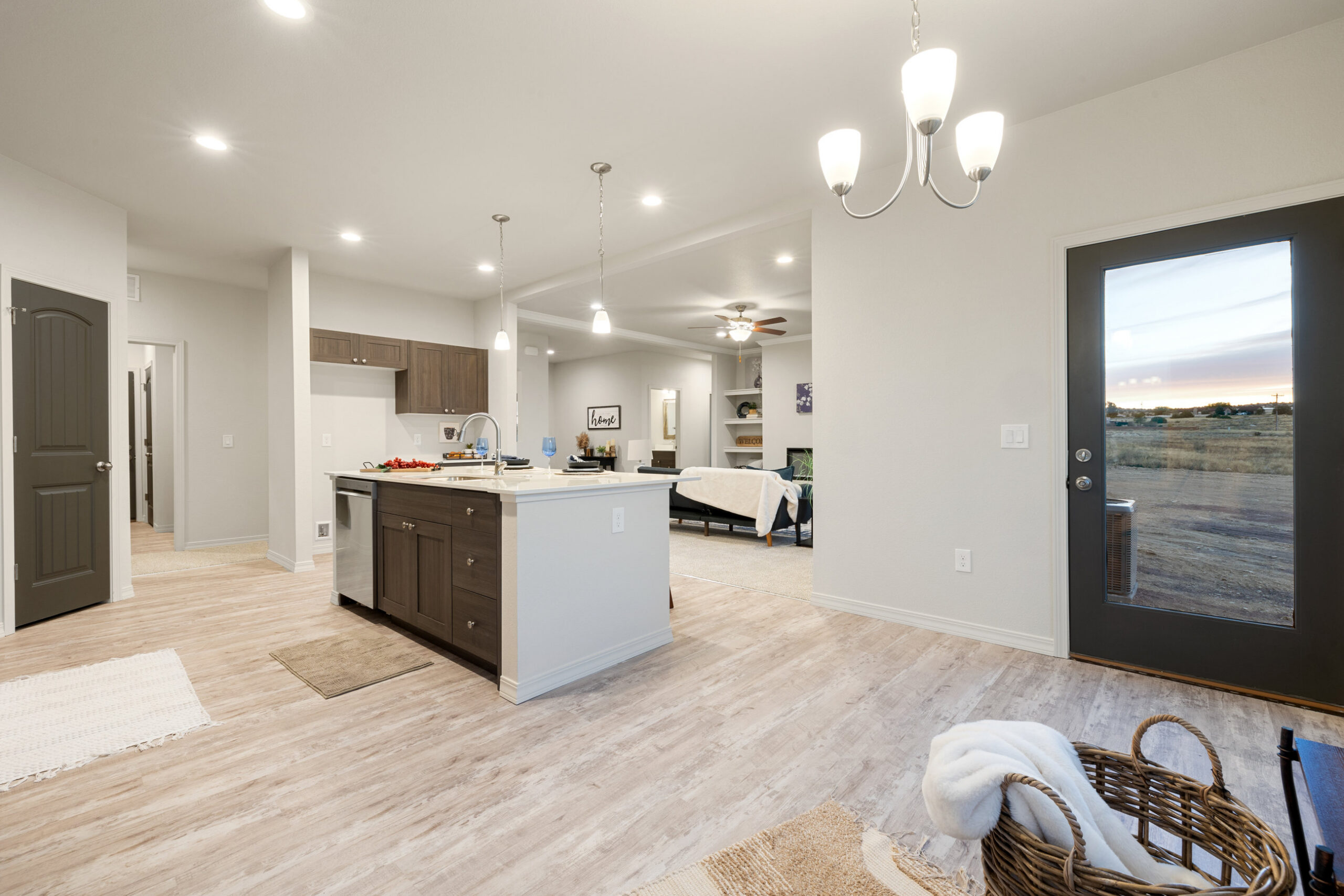 Welcome to your dream home, The Whisper, our largest single level floor plan designed for the way you live. Blending modern style with everyday comfort, this open concept layout connects the kitchen, dining, and living areas, creating the perfect setting for gatherings or quiet nights in. The living room features built in shelves next to a large wall space for that flat screen tv for movie night or your favorite sports game, and a wall of windows come standard, filling the space with warmth and natural light.