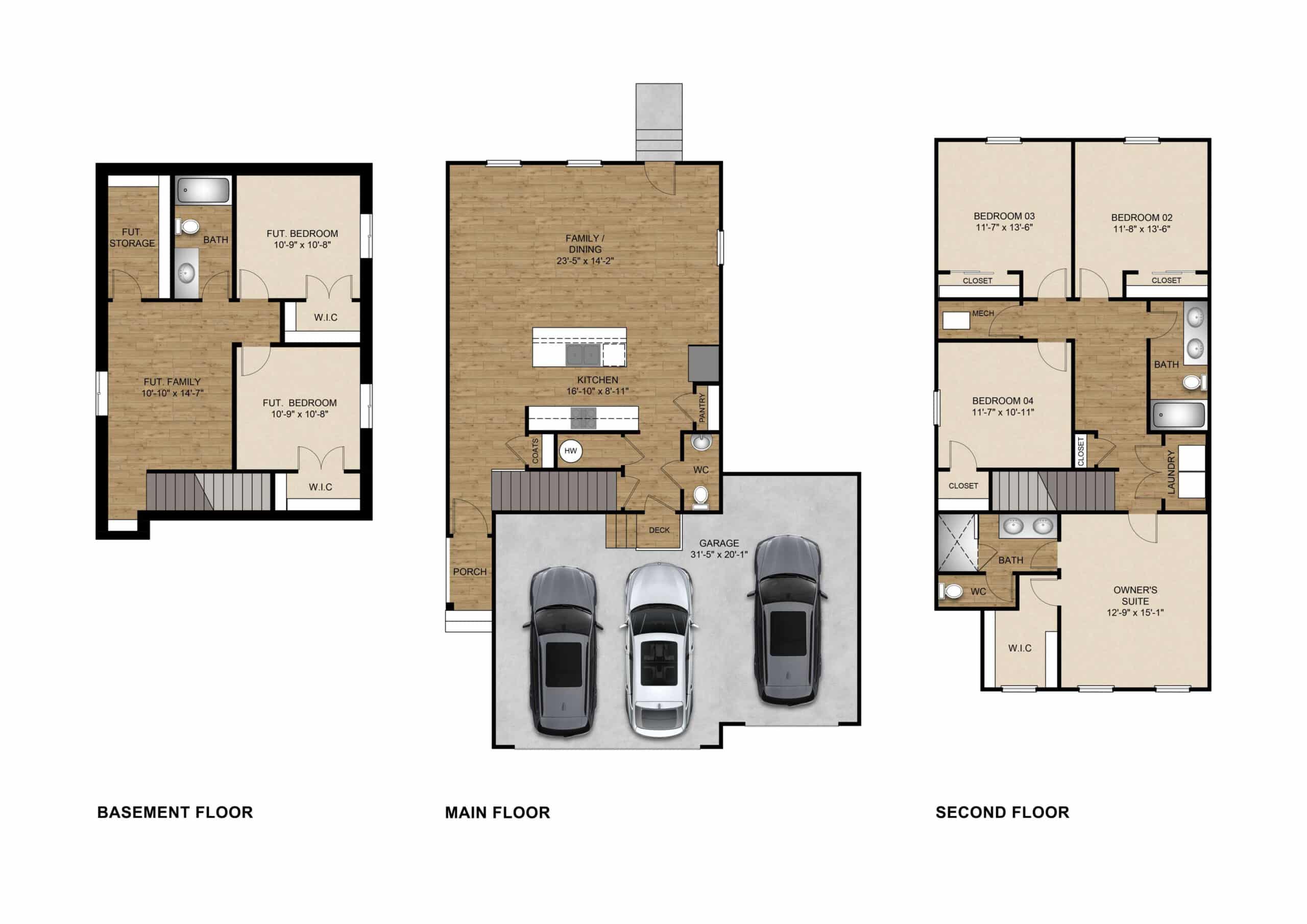 The Evergreen Basement plan located at 2362 East Woodbury Lane, Eagle Mountain, UT 84005 features 4 Bedrooms, 2 bathrooms, a 2 car garage and a total area of 2620 square feet.